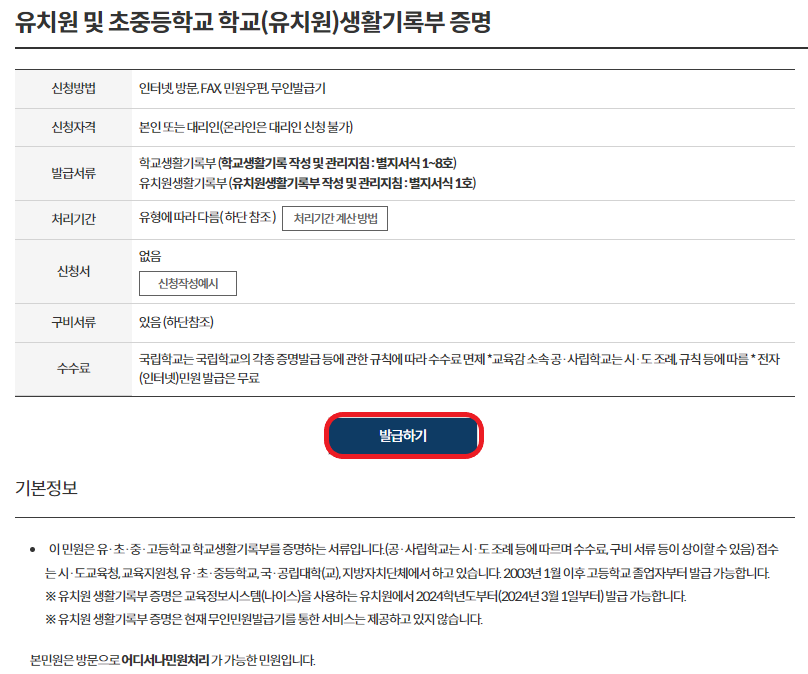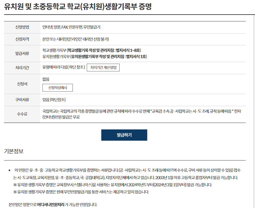 - 예전에는 학생부 사본 발급 수수료가 부과되었으나 현재는 무료이다.