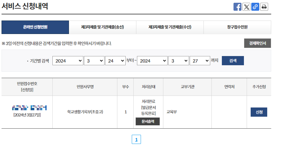 고등학교 생활기록부 인터넷 발급 방법?