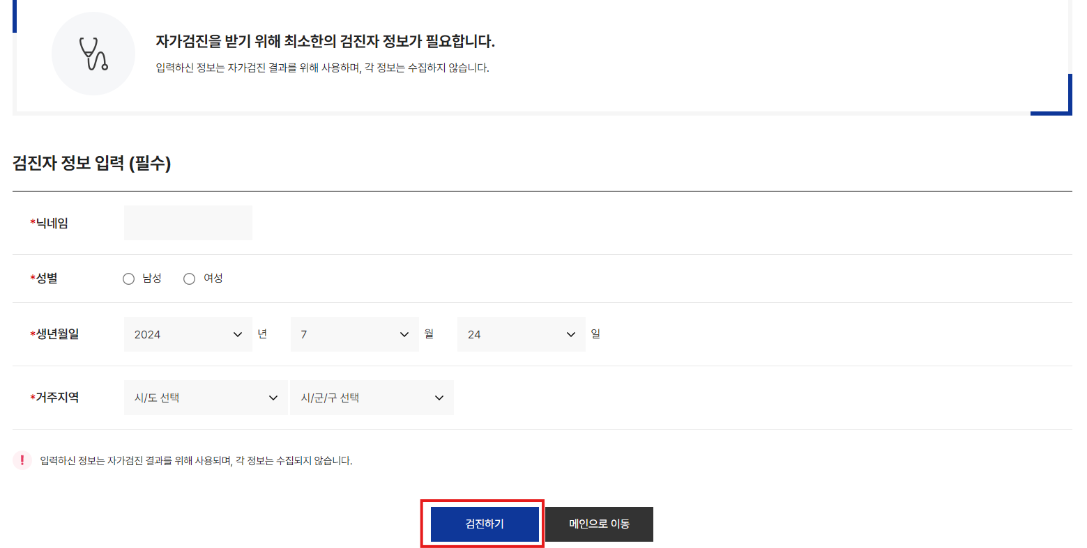 * 입력한 정보는 수집되지 않는다. 단순히 검진 결과를 위해 사용됨.