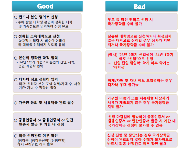 국가장학금 신청 시 유의사항은 다음과 같으니 참고하기 바란다.