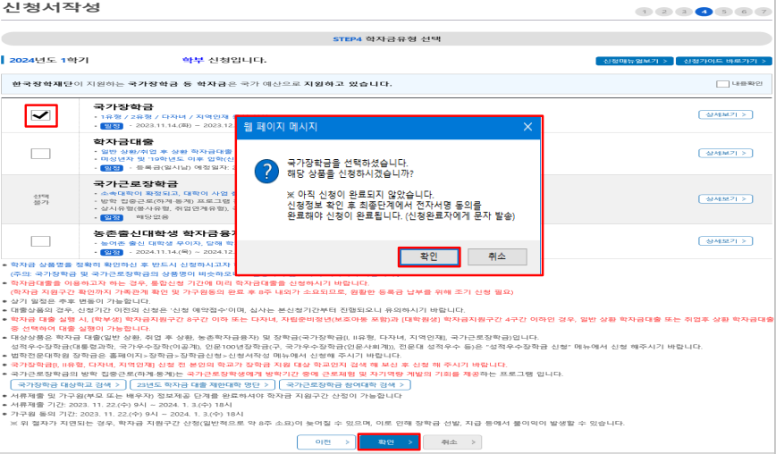 국가장학금과 국가근로장학금 학자금 상품명이 비슷하므로 오신청하지 않도록 유의한다.