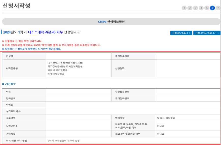 신청 시 입력한 가구원의 '가구원 정보제공 동의현황'을 반드시 확인 및 미동의 시 기한 내 완료해야 국가장학금 수혜가 가능하다.