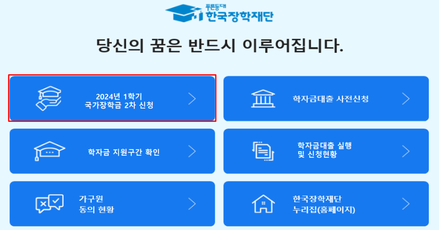 아래의 버튼을 클릭하여 한국장학재단 홈페이지로 이동한다.