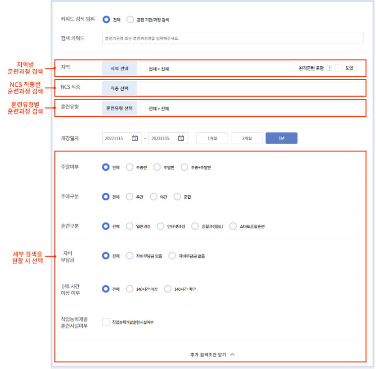 훈련과정 검색하는 방법?
