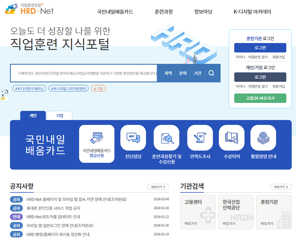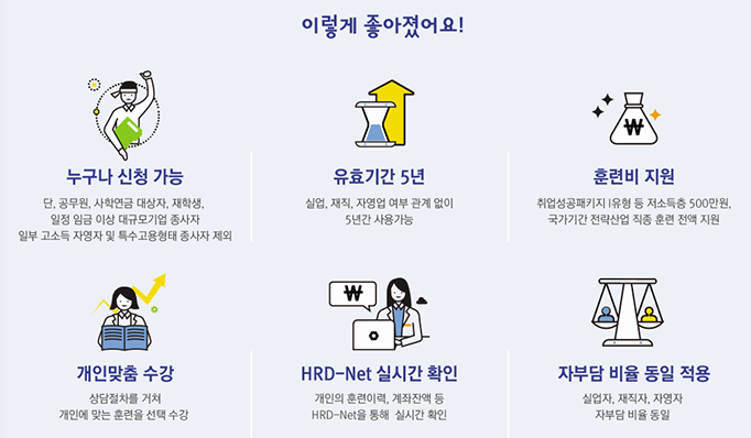 실업자, 재직자, 일부 자영업자 등 취업여부나 직종에 관계없이 누구나 신청이 가능한 직업훈련 지원카드이다.