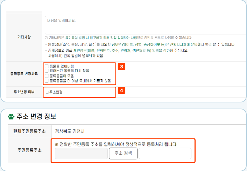 동물 등록정보 연결 및 변경방법