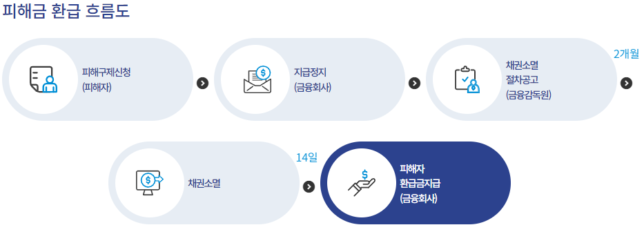 4. 금융감독원은 채권소멸일로부터 14일 이내에 환급금액을 결정한다.(금융회사는 지체없이 피해자에게 환급한다.)
