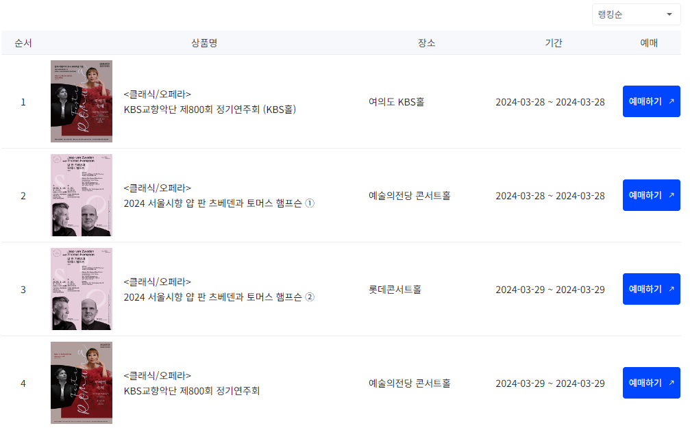 2. 관람하고 싶은 공연(연극·뮤지컬·클래식·오페라·무용·국악), 전시를 선택하여 예매한다. 예매 건당 7만원 이내 사용이 가능하며 추가금액은 자부담이다.