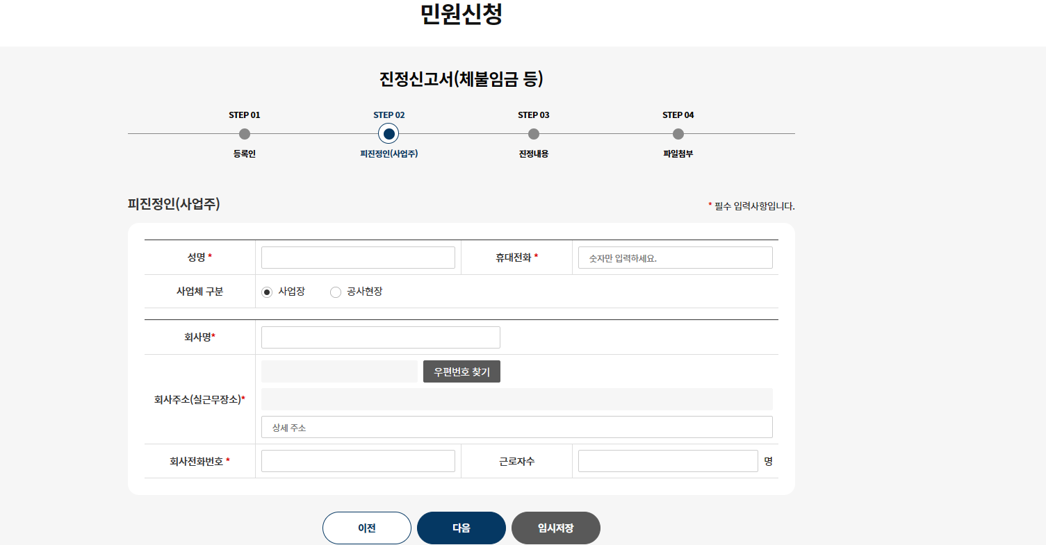 5. 피진정인. 즉, 사업주의 정보를 입력하고 다음을 누른다.