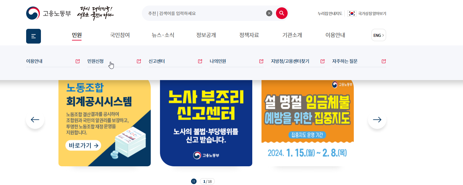1. 아래의 고용노동부 홈페이지에 접속한다.
