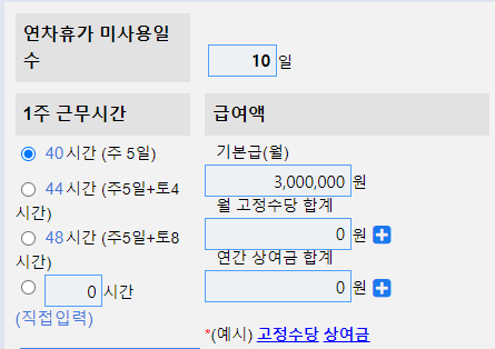 예를 들어, 월 기본급 3,000,000원을 받고 1주에 40시간 근무, 연차휴가 미사용일 수는 10일이라고 가정하자.