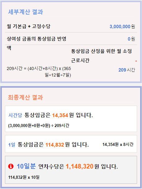 그래서 총 10일 분 연차수당은 1,148,320원이 되는 것이다.