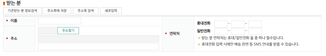 3. 받는 사람의 이름, 연락처, 주소를 입력한다.