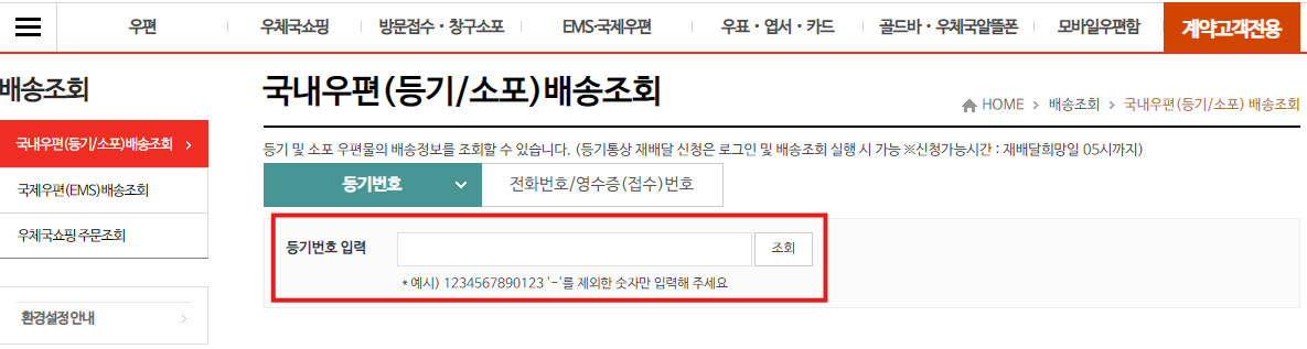 (등기번호 알고있을 때)우편물 등기번호조회 방법