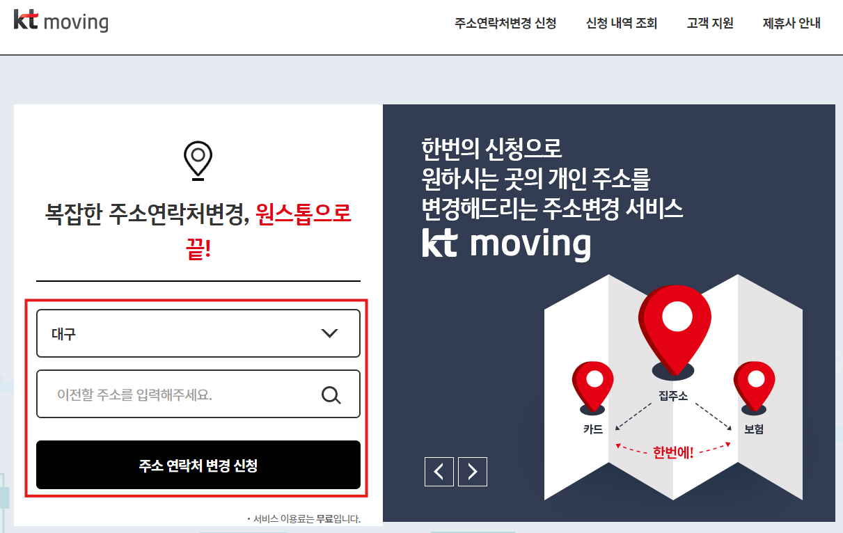 ③ KT무빙에서 주소연락처변경서비스되는 제휴사는 통신사/카드/은행/생명보험/화재보험/유통/자동차/항공/정유/증권/신문잡지 등 몇 개만 가능하며 한정적이다.