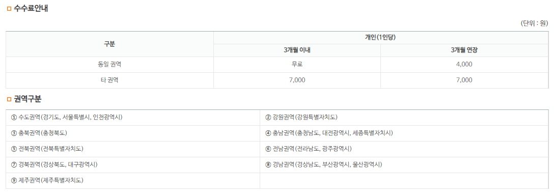 ④ 수수료는 위 우체국 유료 우편물 전입지 전송서비스의 수수료와 같다.
