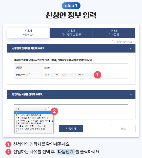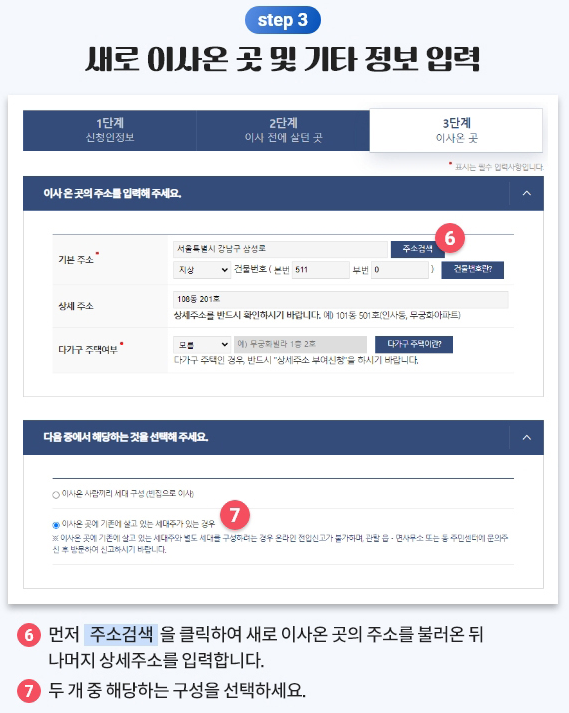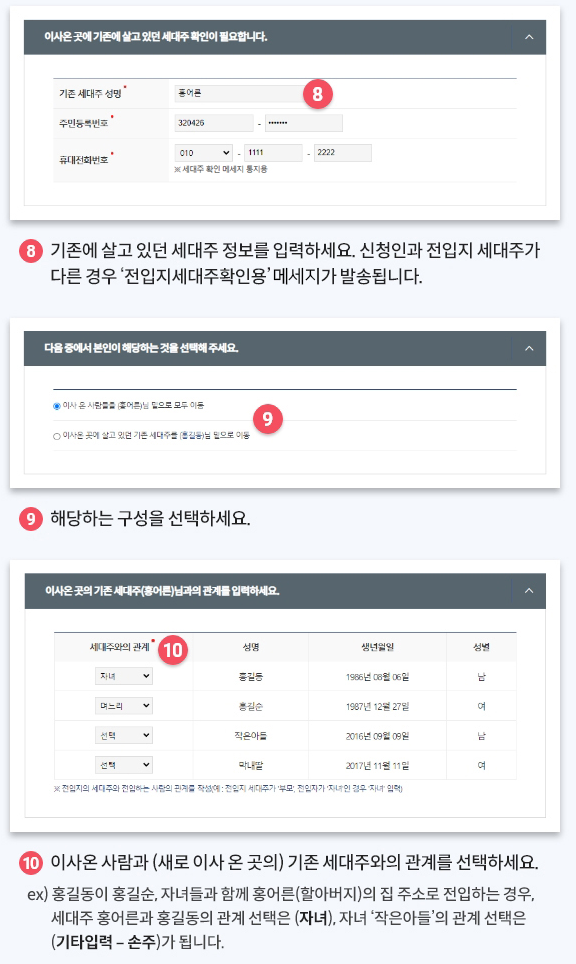 ┗ 단, 신청인이 미성년자이거나 기존 세대가 살고 있는 곳에 별도로 세대 구성할 경우 온라인 신청 불가