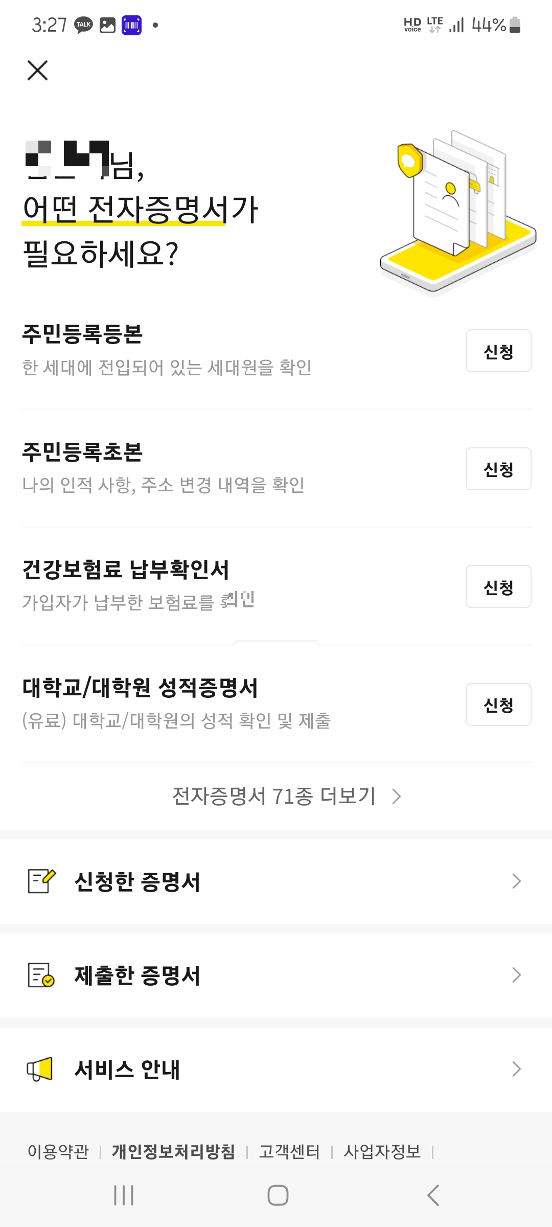 주민등록등본 카카오톡 발급 방법?