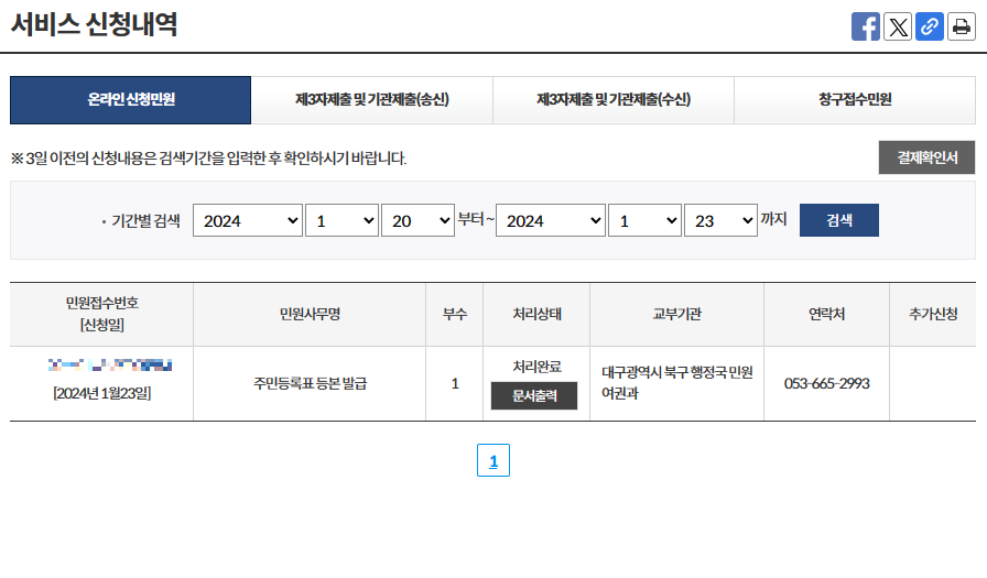 1. 주민등록등본 인터넷 발급 방법에서 처리가 완료되었다면 문서출력버튼을 눌러준다. 문서출력버튼을 누르면 다음과 같은 화면이 나타나고 오른쪽 상단에 인쇄 버튼을 눌러준다.