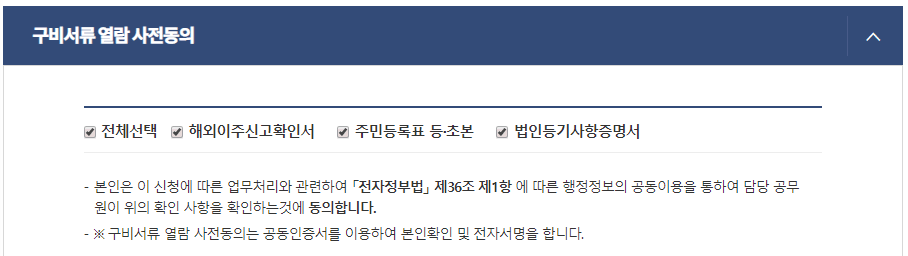 7. 구비서류 열람 사전동의를 해주면 신청이 완료된다. 신청이 완료되고 '처리됨'으로 상태가 변경되면, 문서를 저장할 수 있다. 저장된 문서를 인쇄하거나 필요한 곳에 제출하면 된다.