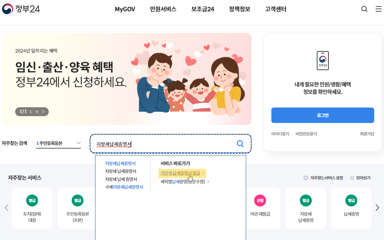 지방세완납증명서는 정부24에서 발급이 가능하다.