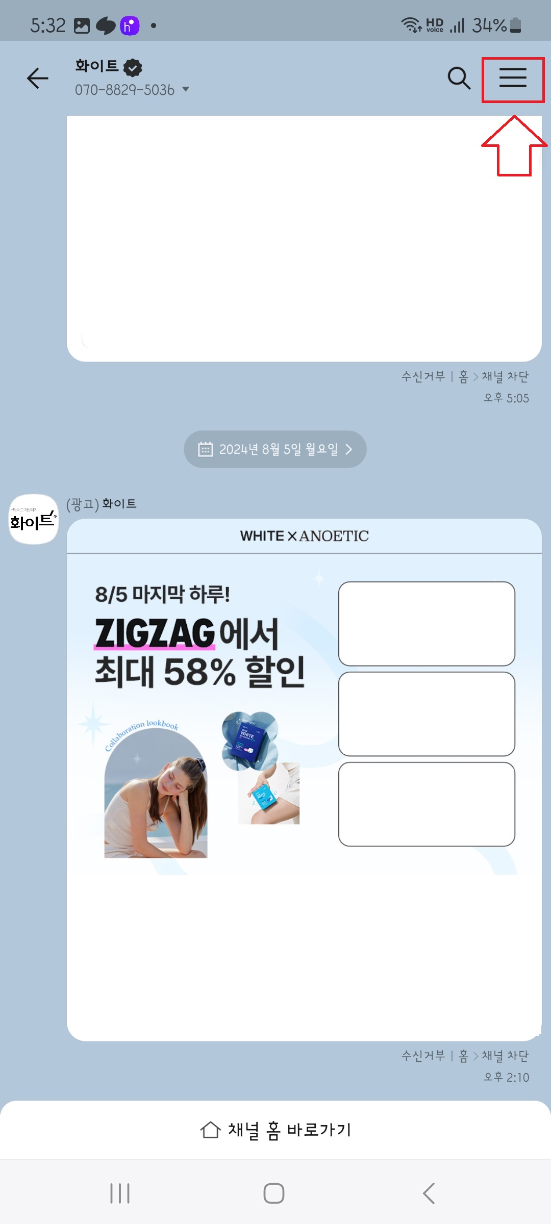 위에서 카톡 광고 차단 방법을 잘 따라하여 완료하였다면 카톡 광고 채널이 제대로 차단되었는지 확인해보고 싶을 것이다. 확인하는 방법은 아래와 같다.