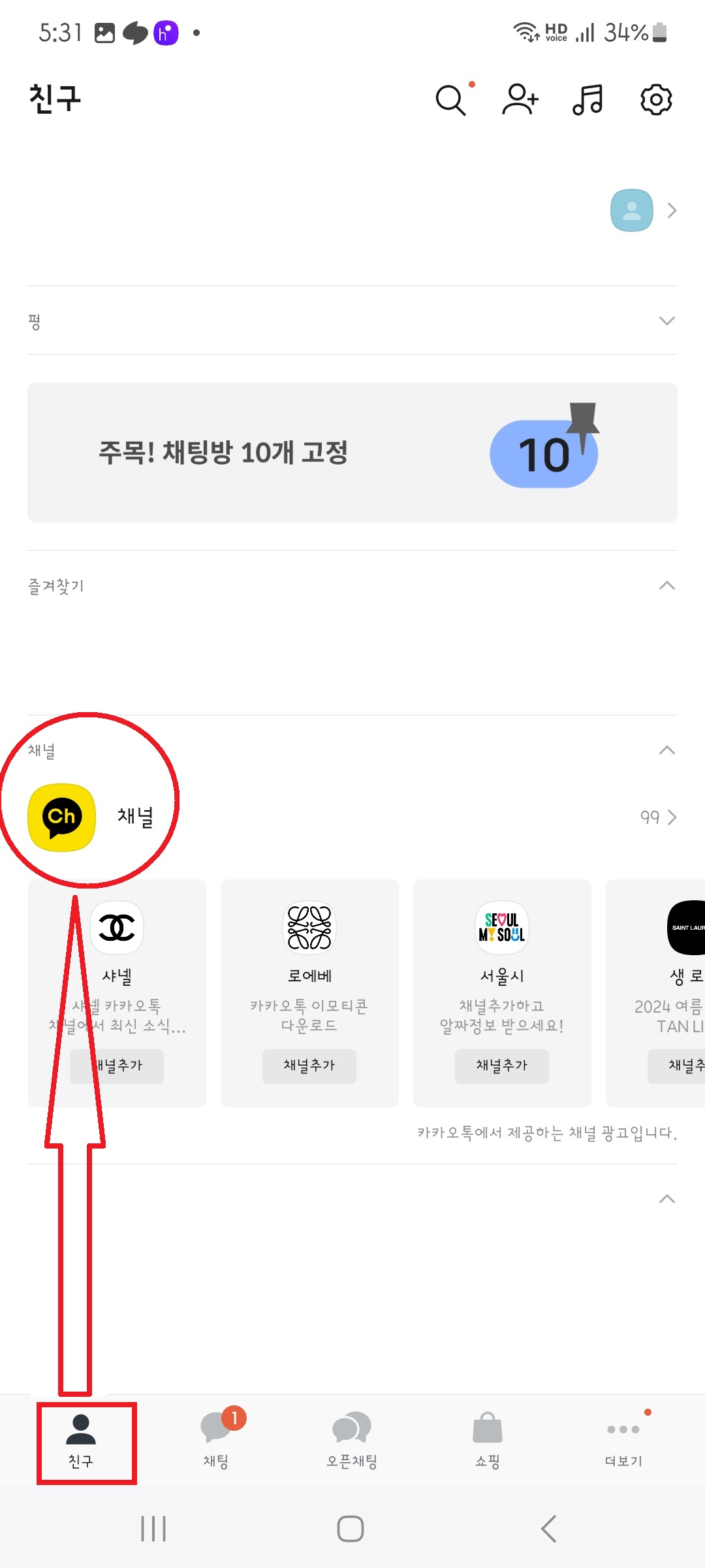2. 친구 탭에서 제일 상단에 있는 채널을 클릭해준다.