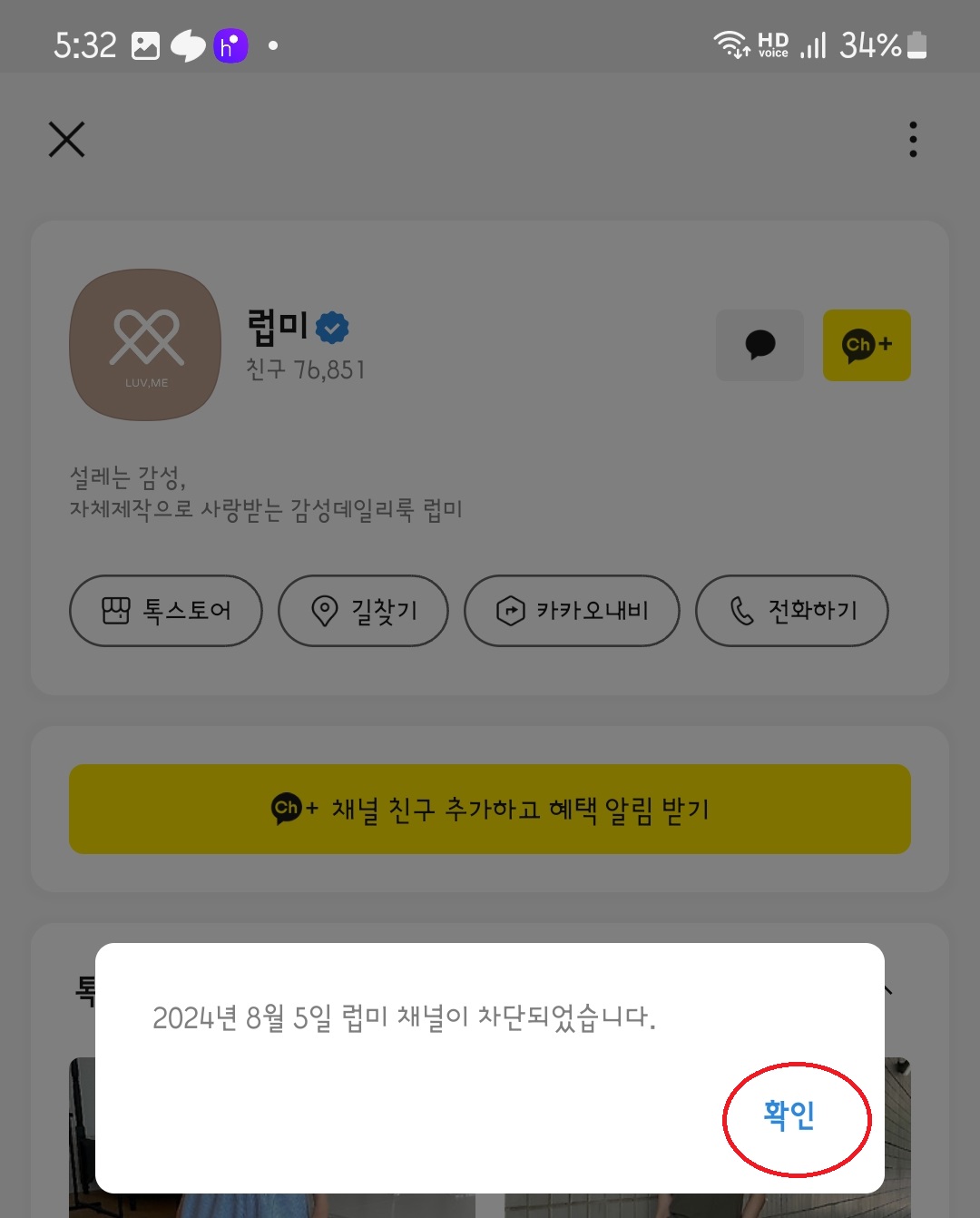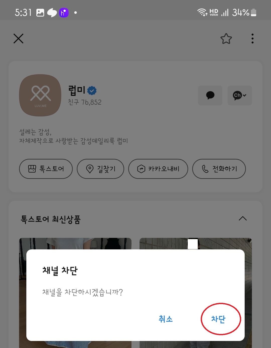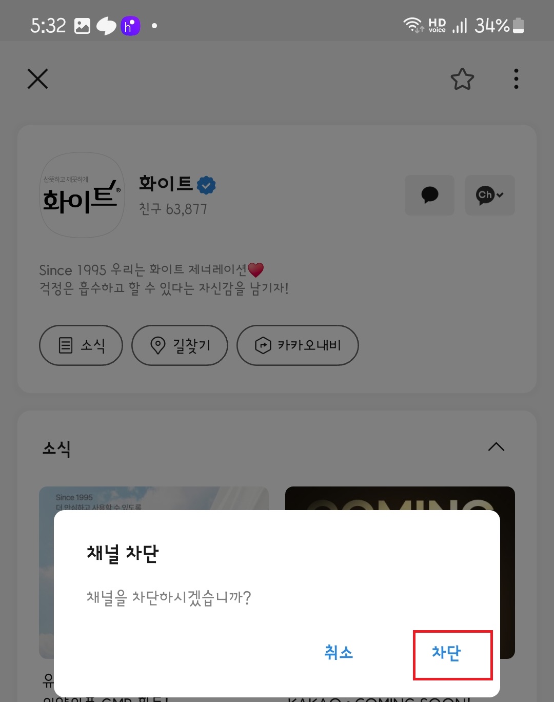 6. "채널을 차단하시겠습니까?"라는 문구가 나타나면 차단을 눌러준다.