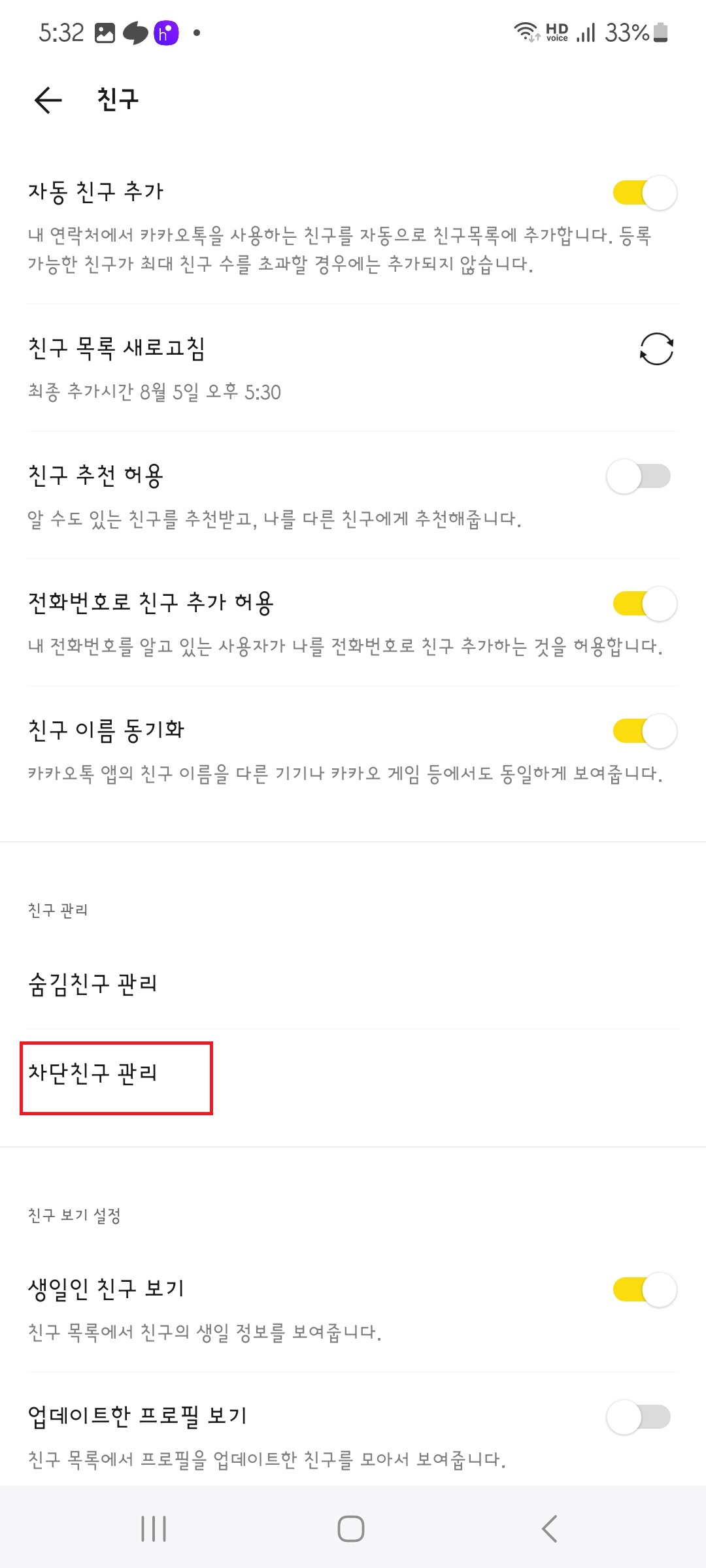 2. 친구 관리 - 차단친구 관리를 클릭해준다.