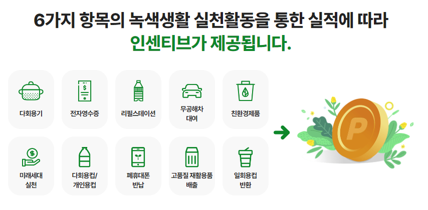 다양한 녹색실천 활동을 통해 지구도 지키고 포인트도 받고 일석이조의 효과를 누려보자.