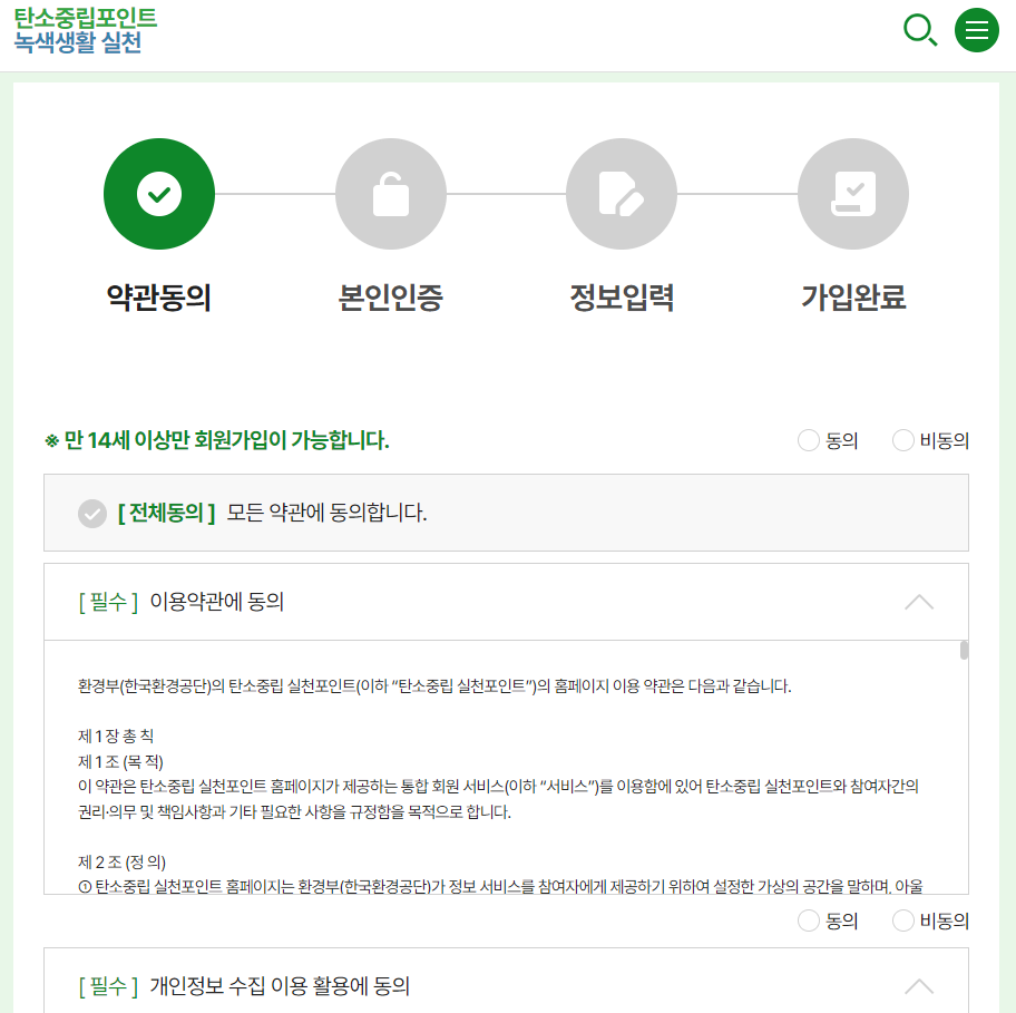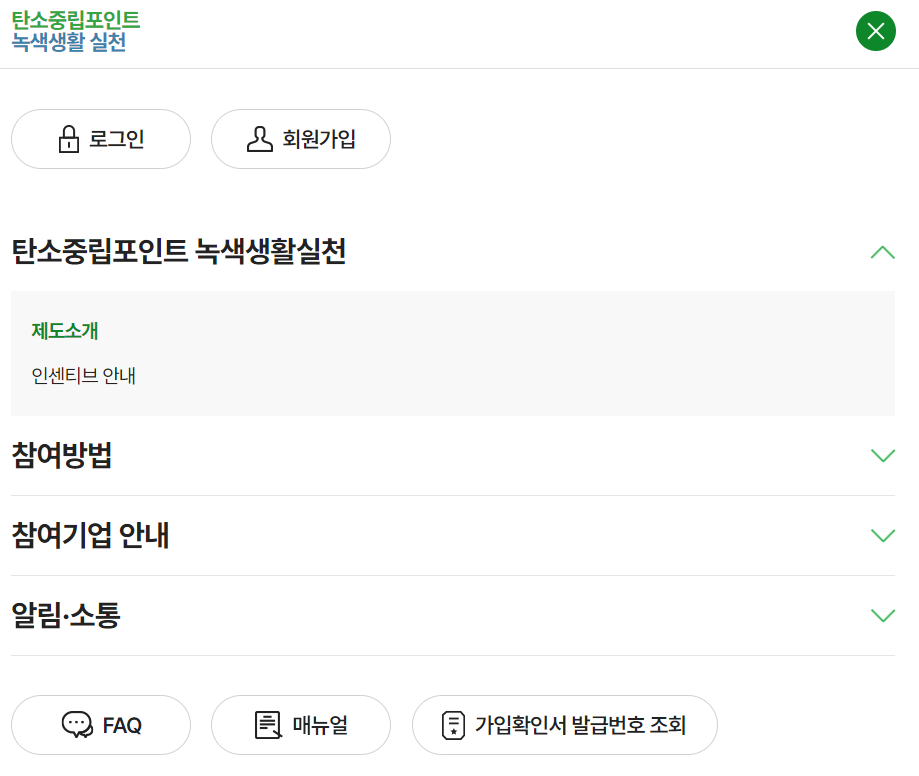 일상생활속에서 친환경 활동을 실천하는 국민이라면 누구나 참여가 가능하고 탄소중립포인트 녹색생활 실천 홈페이지에서 회원가입을 통해 참여가 가능하다.