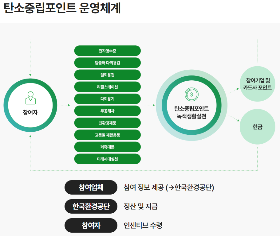 국민의 탄소중립 생활 실천문화 확산을 위해 다양한 민간기업들의 친환경 활동 이용 시 이용 실적에 따라 인센티브(포인트)를 지원하는 제도를 말한다.