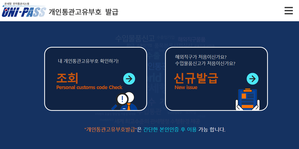 1. 아래 버튼을 클릭하여 관세청 개인통관고유부호 발급 페이지로 이동한다.