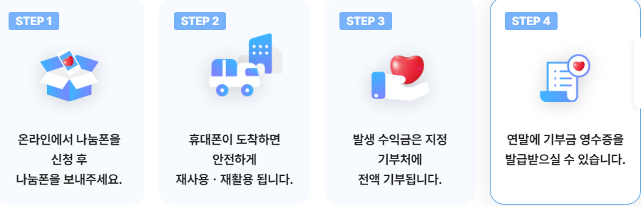→ 휴대폰 액정이 깨지거나, 전원이 들어오지 않아도 기부가 가능하다.(노후화 정도와 상관없음)