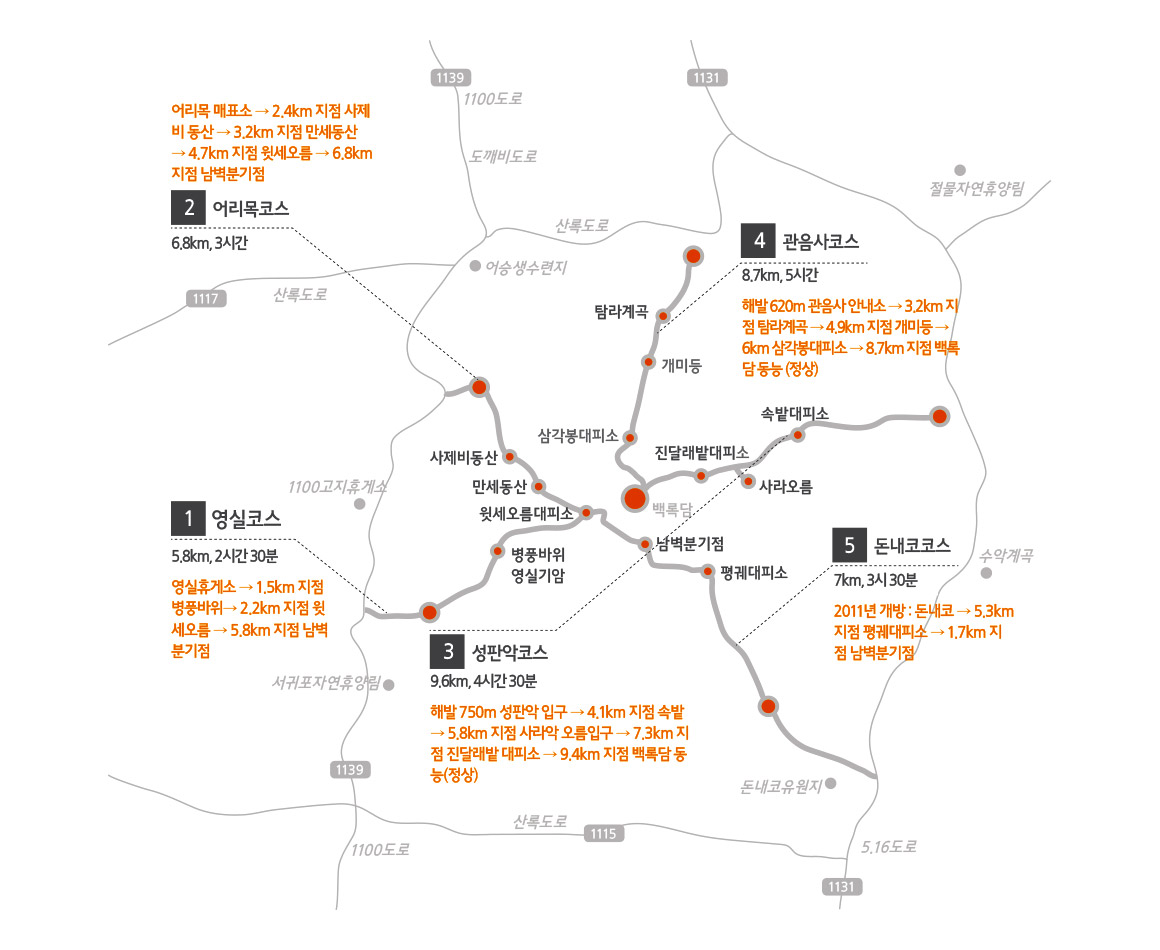 한라산 등산 코스는 총 5개 코스로 이루어져 있다.