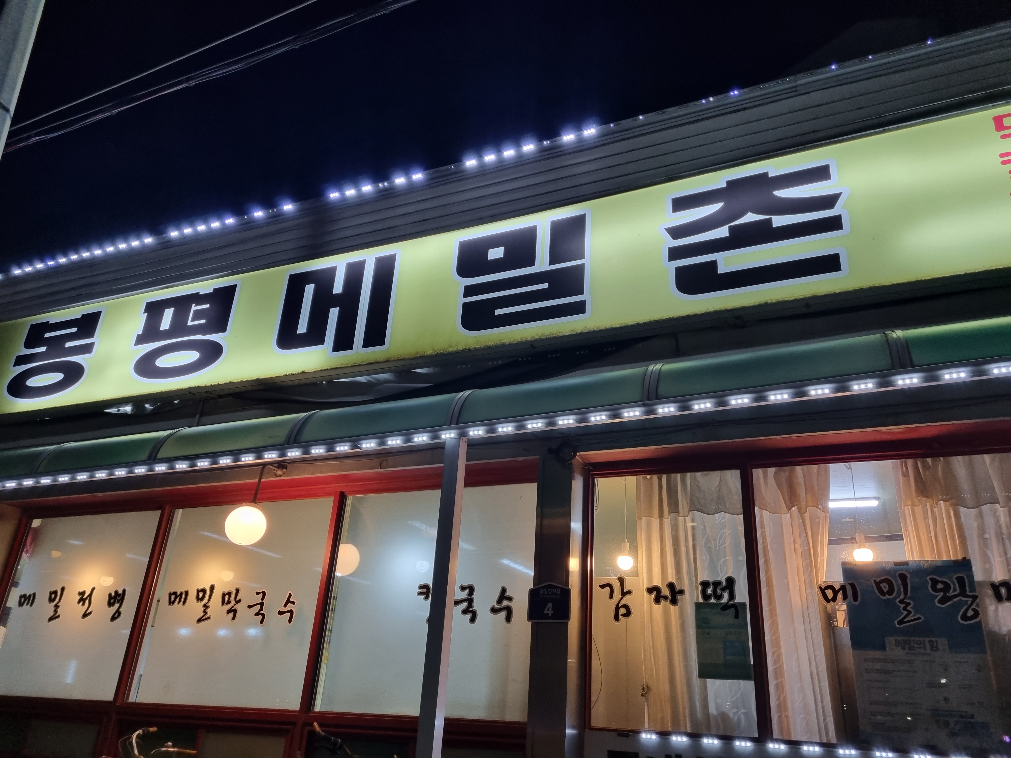 우리가 간 곳은 횡계에 있는 봉평메밀촌. 숙소 바로 옆이 횡계라서 횡계에 있는 막국수집을 찾음.