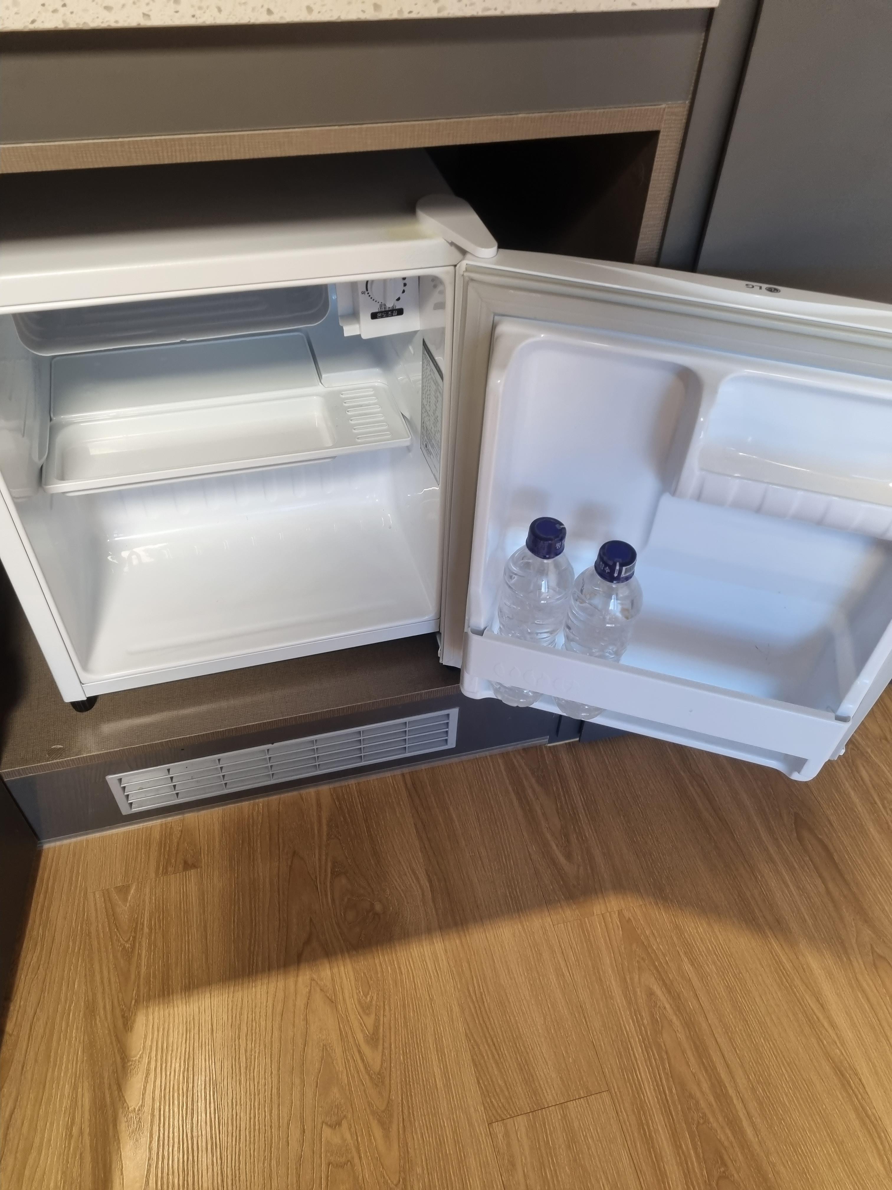 물은 냉장고에 2개, 밖에 2개 있다. 평창이라서 그런지 평창수를 줌.