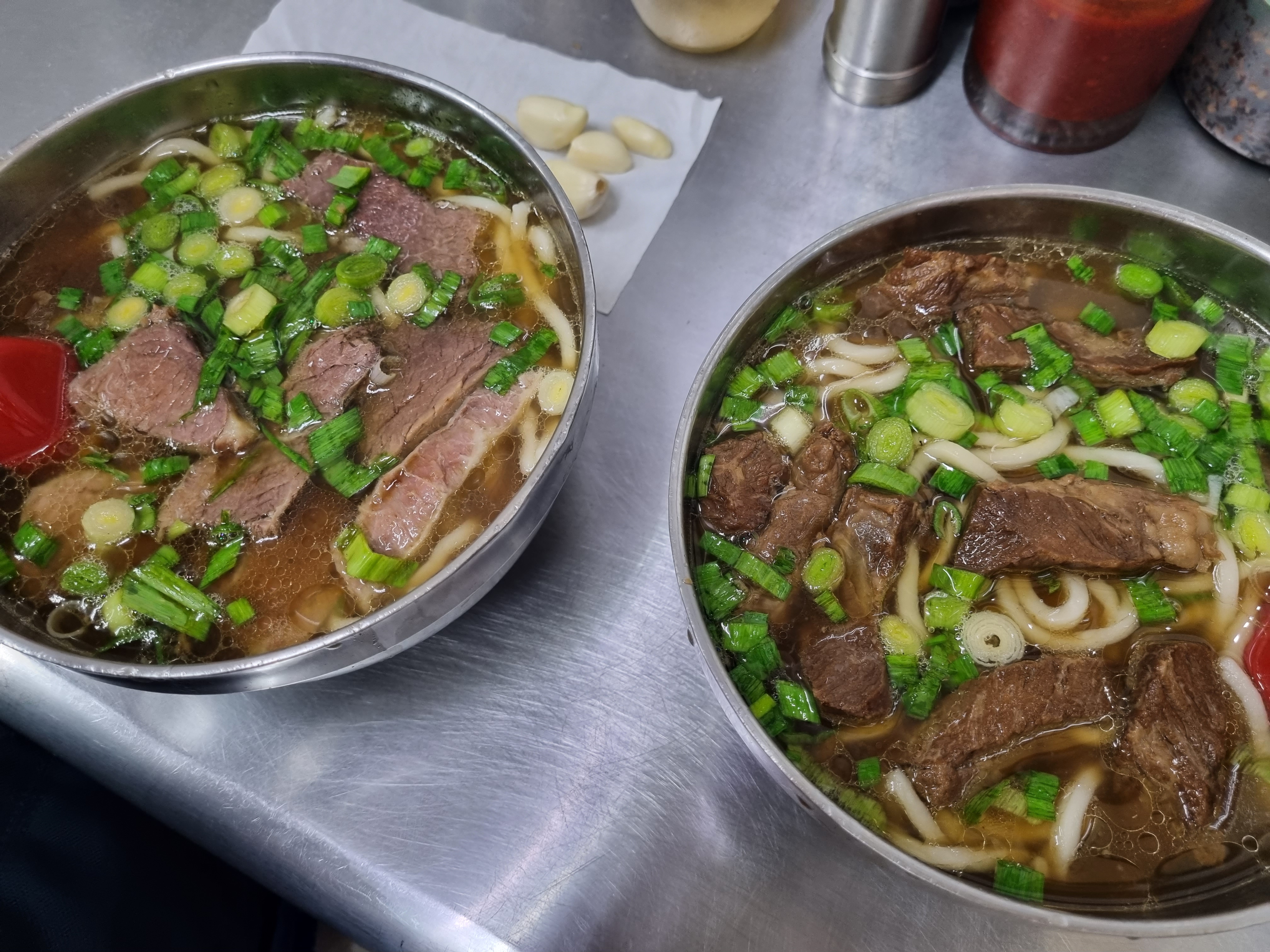 왼쪽이 기본 우육면 오른쪽이 삶은 고기가 들어간 우육면이다