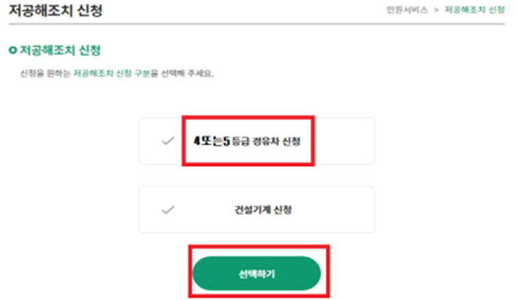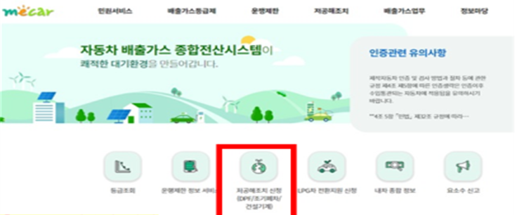 ② 저공해조치 신청(DPF / 조기폐차 / 건설기계)를 클릭한다.