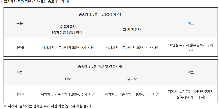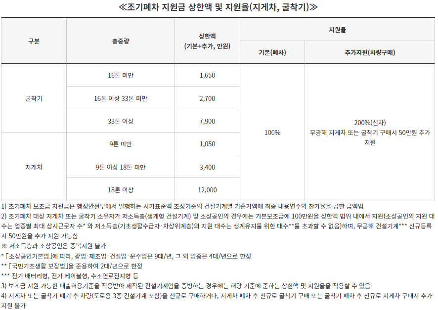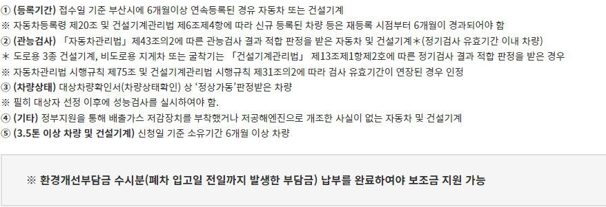 5. 총 중량 3.5톤 이상 자동차 및 건설기계 조기폐차 신청은 6개월 이상 소유하여야 한다.