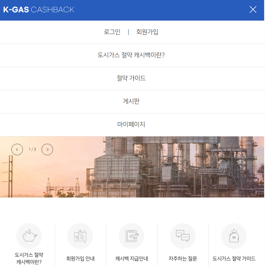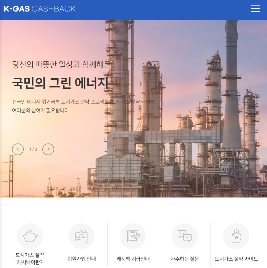 1. 아래의 버튼을 클릭하여 K-GAS CASHBACK 홈페이지로 이동한다.