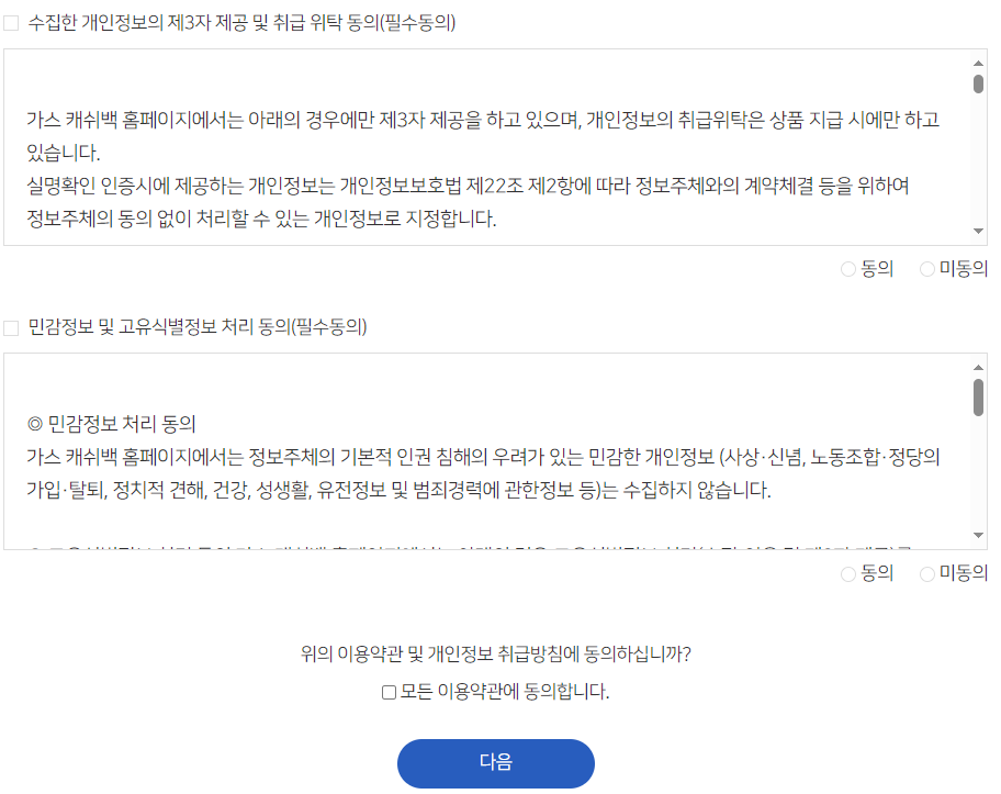 4. 약관에 동의 후 다음 버튼을 누른다.