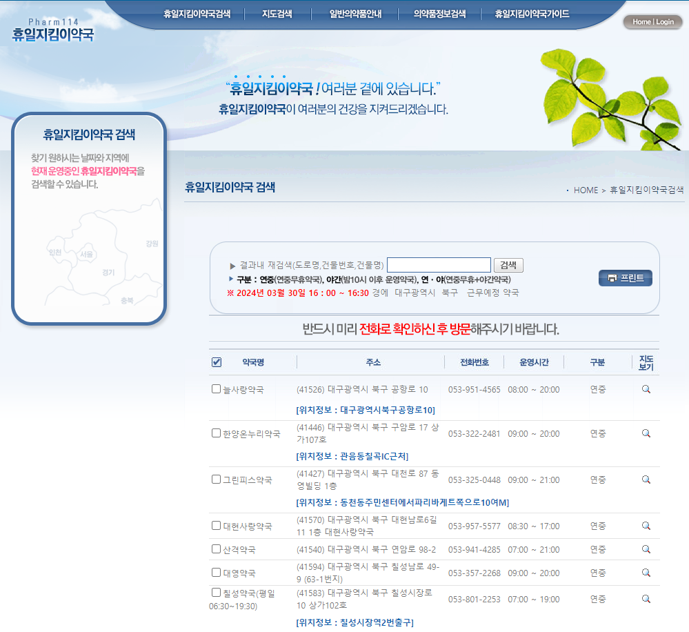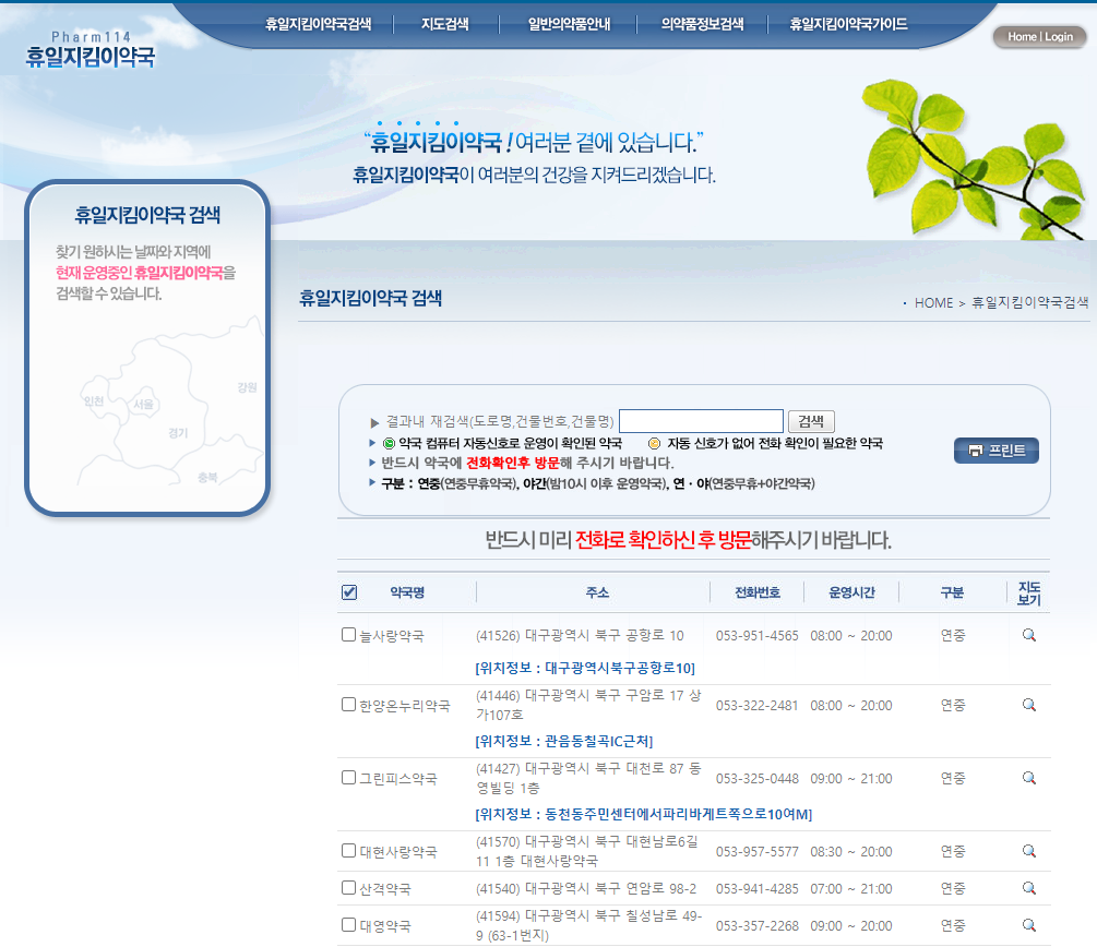 우리가 살고 있는 지역에 하나쯤은 있으니 미리 꼭 알아두어 필요한 때에 신속히 약을 구할 수 있도록 하자.