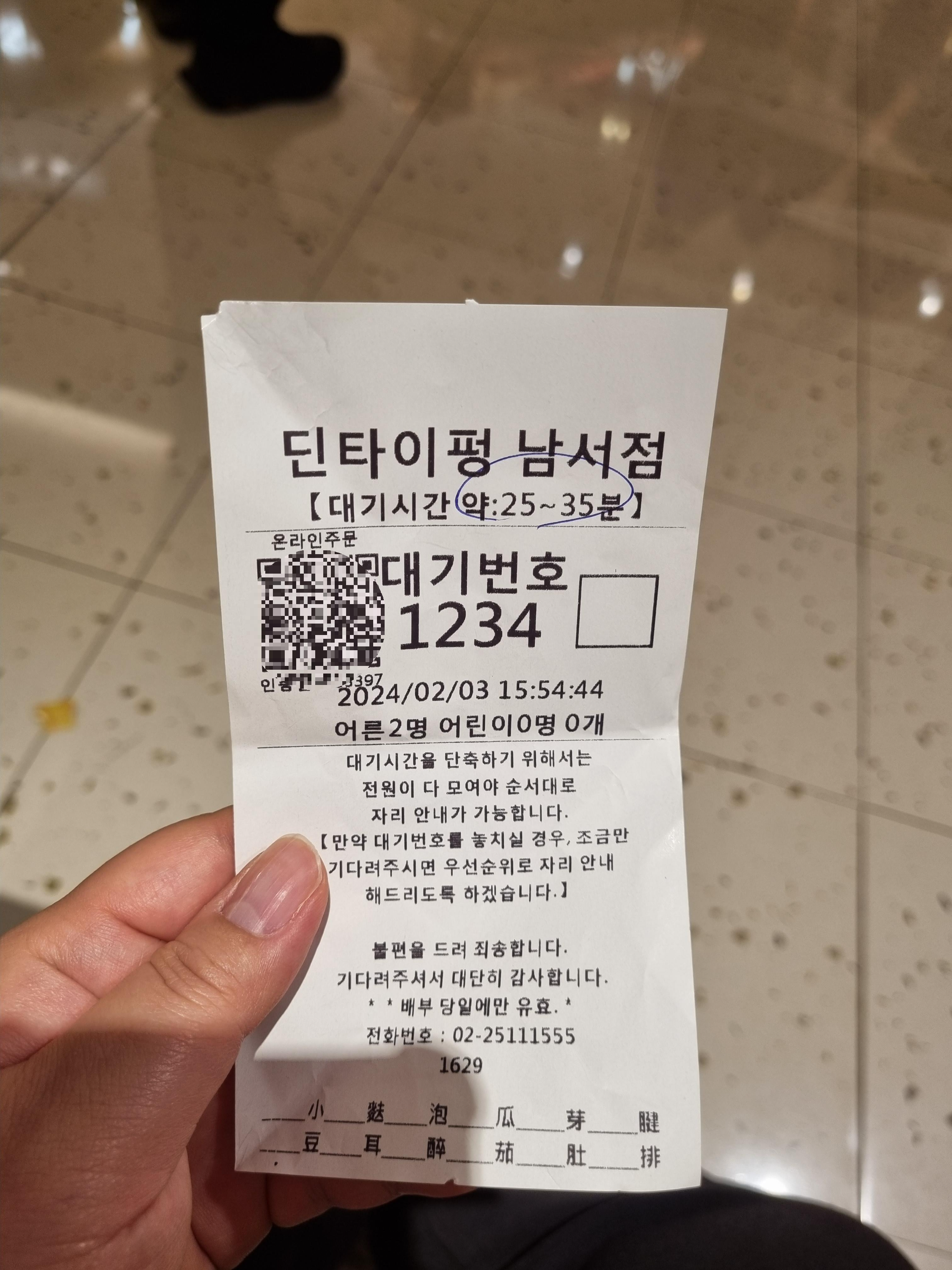알아보니 2인석자리는 금방 자리가 나기 때문에 대기가 짧다고 한다